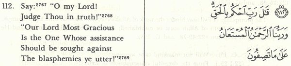 We see this with his translation and footnote for sura 21:112. Below are scans from The Holy Qur'an: Text, Translation, and Commentary, 4th ed., Brentwood, Md., U.S.A.: Amana Corp., 1989, by Abdullah Yusuf Ali: